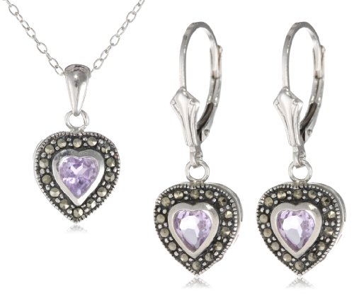 Click here to Read Customer Reviews If this is a MUST HAVE product, be sure order now to avoid disappointment. Get The best cheapest price of Sterling Silver Marcasite and Amethyst Heart Pendant, 18" and Lever Back Drop Earrings Set on the web we have searched.
